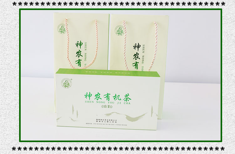 神農(nóng)有機茶系列之——白茶,采用綠茶加工工藝,選一芽二葉初展的白茶嫩葉為原料,經(jīng)殺青、理條、烘干、提香等工藝加工而制成,屬綠茶類。有機白茶外形挺直略扁,形如蘭蕙;色澤翠綠略帶金黃,白毫顯露;葉芽如金鑲碧鞘,內(nèi)裹銀箭。沖泡后,清香高揚且持久,湯色嫩綠明亮,滋味鮮醇、馥郁,清潤甘爽,飲畢,唇齒留香,回味甘而生津。葉底嫩綠明亮,葉白脈翠,芽葉朵朵,十分可人。